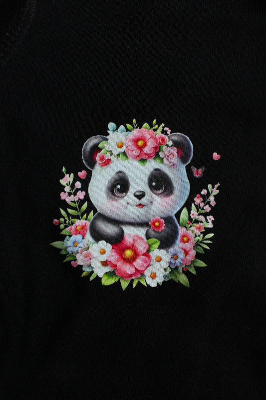 Infant Panda Pink Flower Baby Rib Bodysuit