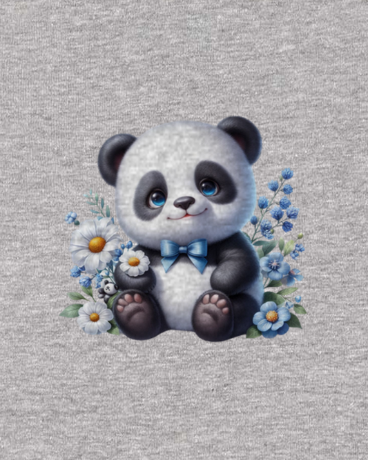 Infant Panda Blue Flower Baby Rib Bodysuit